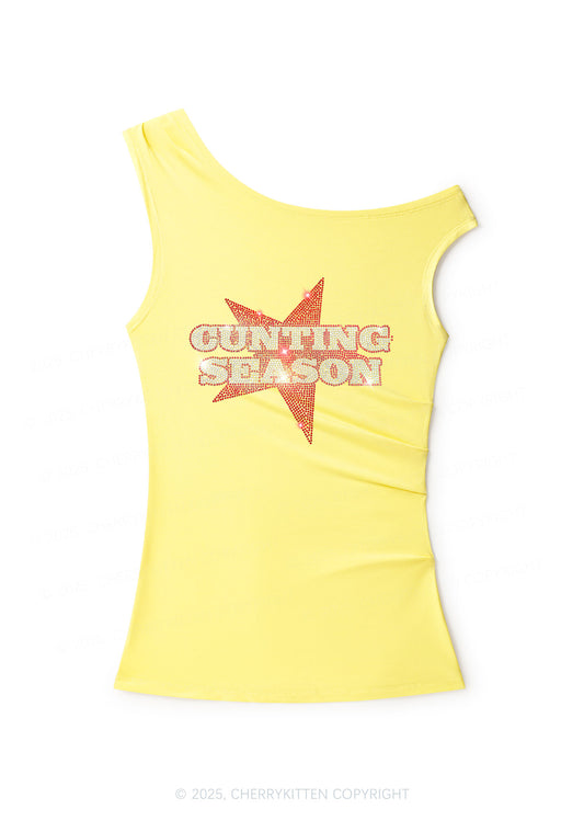 Rhinestone Cunting Season Y2K Off Shoulder Tank Top Cherrykitten