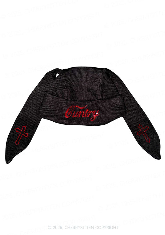 Rhinestone Cuntry Y2K Bunny Ear Knitted Hat Cherrykitten