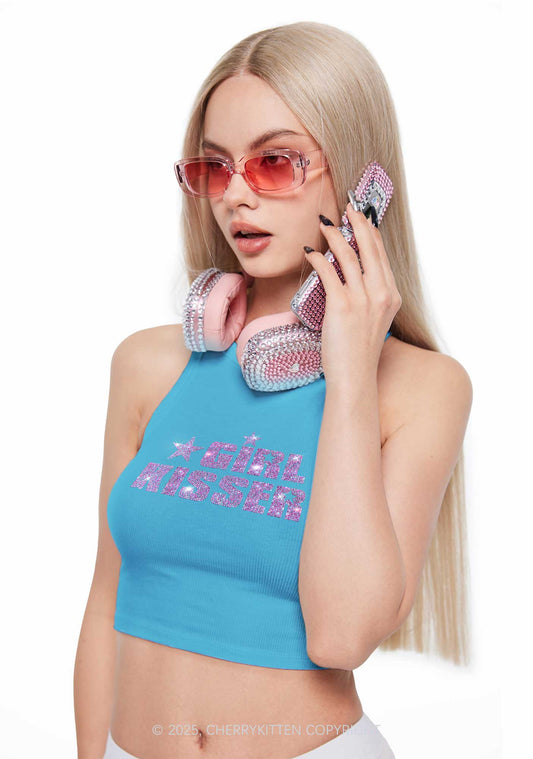 Rhinestone Girl kisser Pride Y2K Halter Neck Cami Cherrykitten