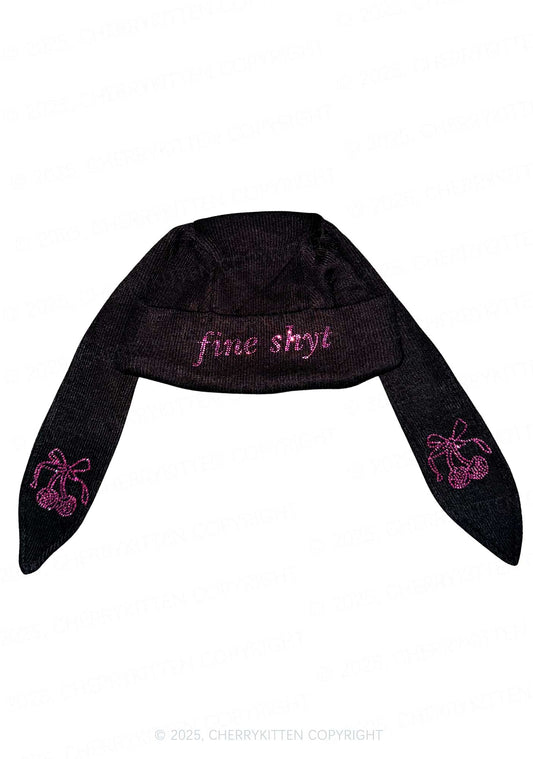 Rhinestone Fine Shyt Y2K Bunny Ear Knitted Hat Cherrykitten