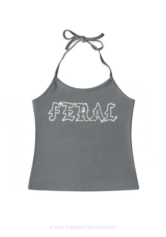 Rhinestone Feral Y2K Halter Neck Cami Cherrykitten