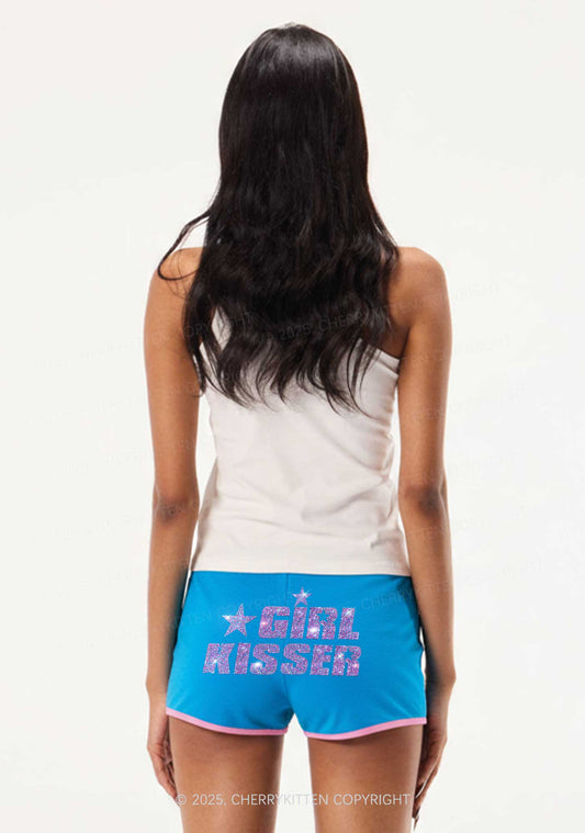Rhinestone Girl kisser Pride Y2K Drawstring Mini Shorts Cherrykitten