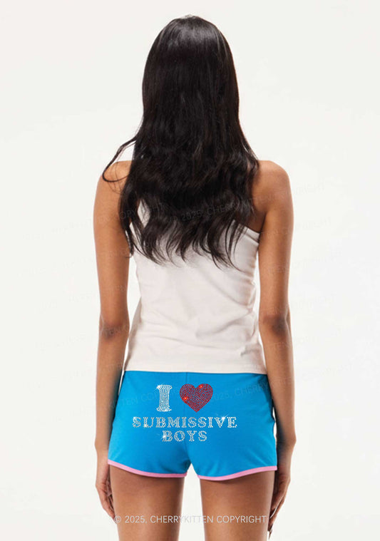 Rhinestone I Love S Boys Y2K Booty Shorts Cherrykitten