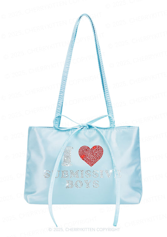 Rhinestone I Love S Boys Y2K Satin Bags Cherrykitten