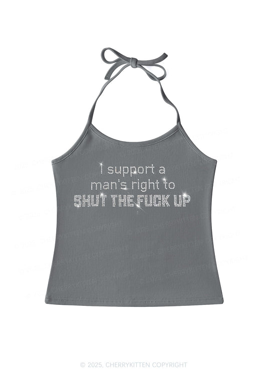 Rhinestone I Support A Mans Right Y2K Halter Neck Cami Cherrykitten