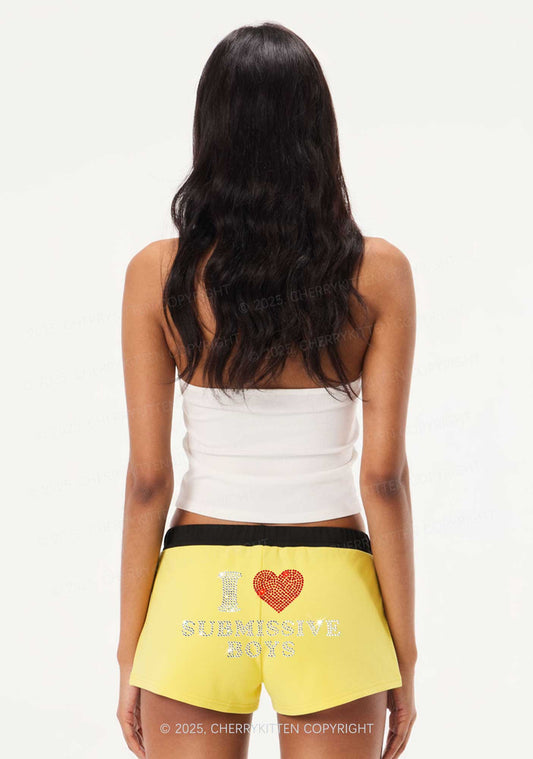 Rhinestone I Love S Boys Y2K Drawstring Mini Shorts Cherrykitten