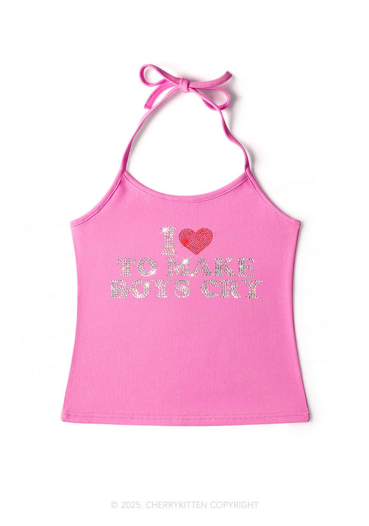 Rhinestone Love To Make Boys Cry Y2K Halter Neck Cami Cherrykitten