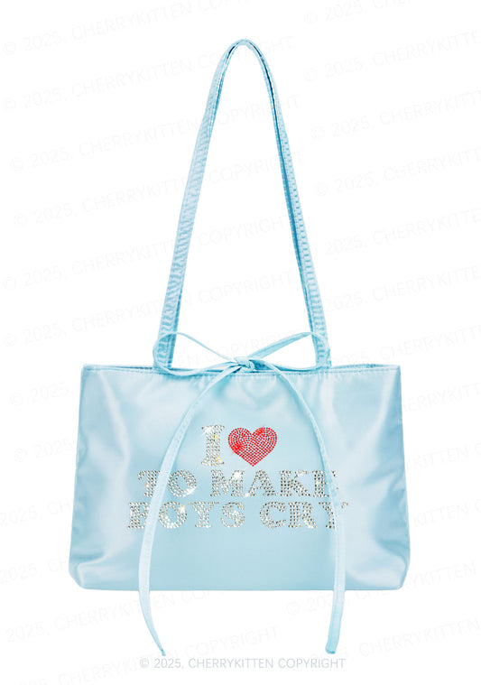 Rhinestone Love To Make Boys Cry Y2K Satin Bags Cherrykitten