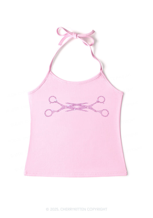 Rhinestone Pink Scissor Pride Y2K Halter Neck Cami Cherrykitten