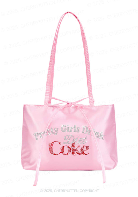 Rhinestone Pretty Girls Drink Diet Coke Y2K Satin Bags Cherrykitten