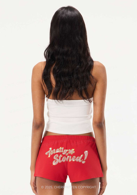 Rhinestone Totally Stoned Y2K Booty Shorts Cherrykitten
