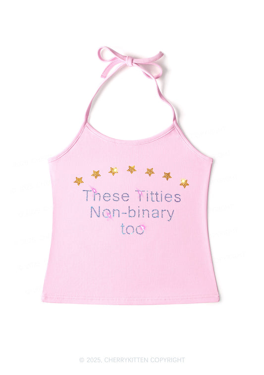 Rhinestone Txtties Nonbinary Too Y2K Halter Neck Cami Cherrykitten