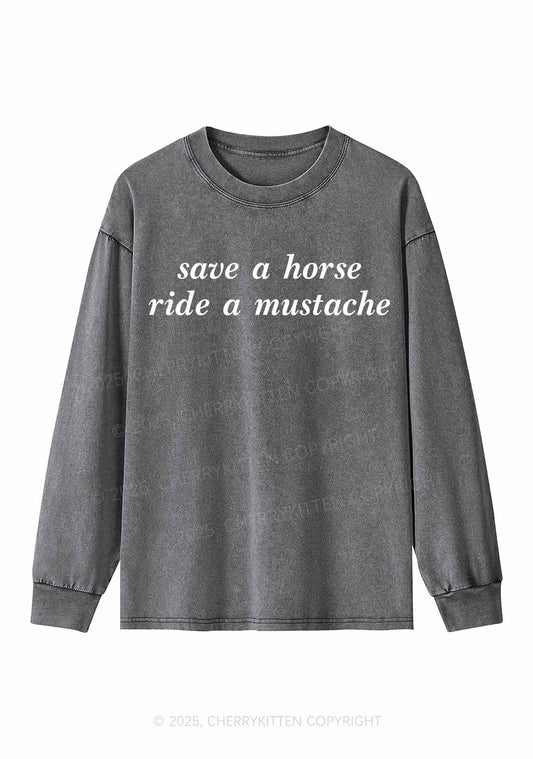 Ride A Mustache Y2K Washed Long Sleeves Cherrykitten