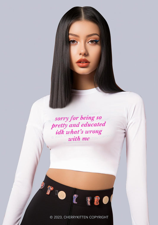 Sorry For Being So Pretty And Educated Y2K Long Sleeve Crop Top Cherrykitten