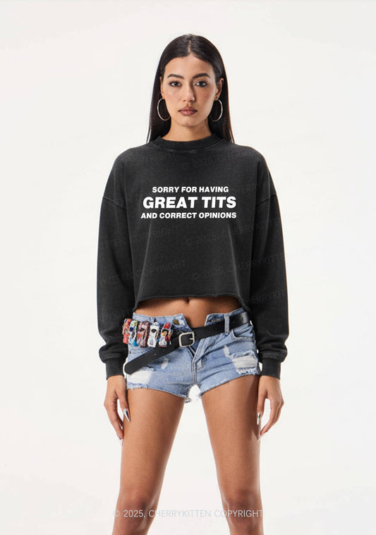Sorry For Having Correct Opinions Y2K Crop Washed Sweatshirts Cherrykitten