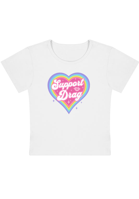 Rainbow Heart Support Drag Lip Print Y2K Baby Tee