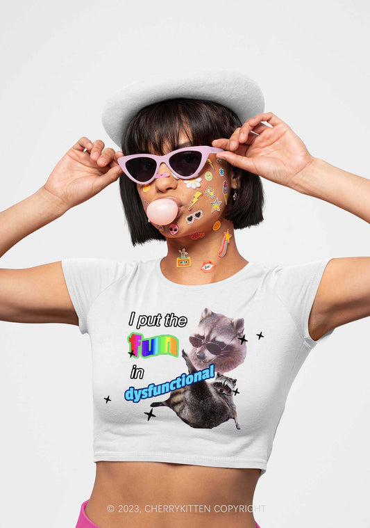 I Put The Fun In Dysfunctional Y2K Baby Tee Cherrykitten