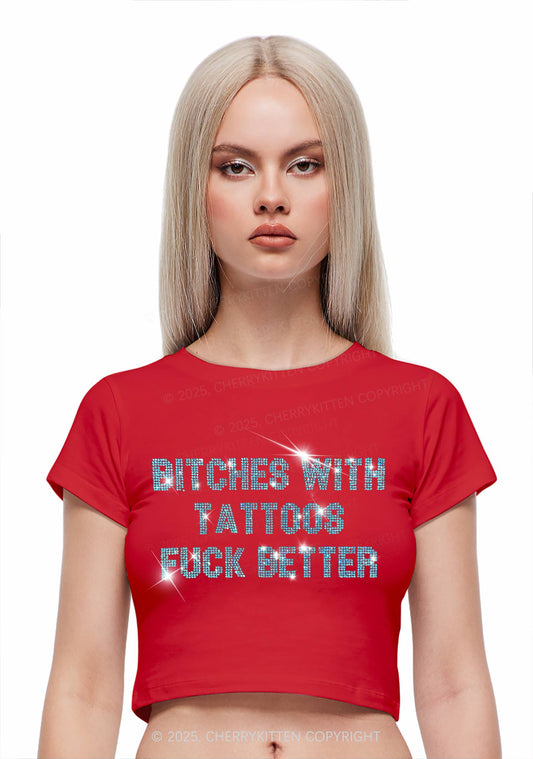 Rhinestone Bxxches With Tattoos Fxxk Better Y2K Baby Tee Cherrykitten