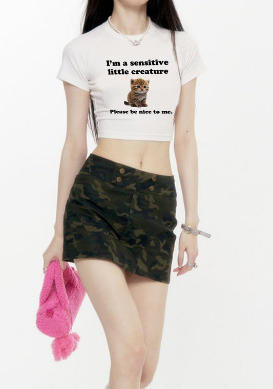 Oval Custom Text Y2K Baby Tee Cherrykitten