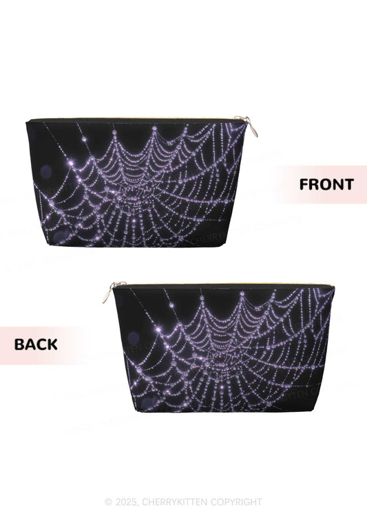 Glistening Spiderweb Y2K Leather Makeup Bag Cherrykitten