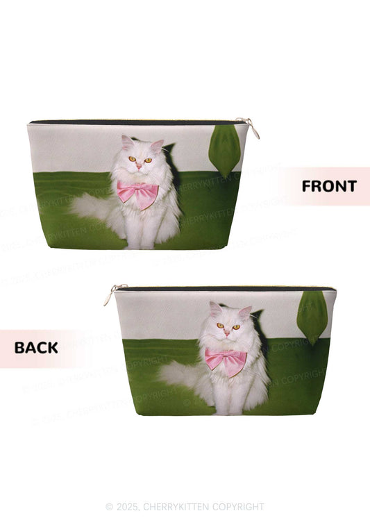 Pink Bow Cat Y2K Leather Makeup Bag Cherrykitten