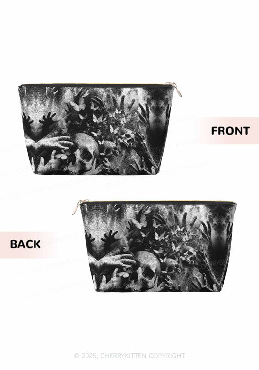 Halloween Gothic Skull Y2K Leather Makeup Bag Cherrykitten