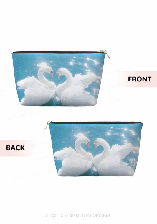 Swan Lovers Y2K Leather Makeup Bag Cherrykitten