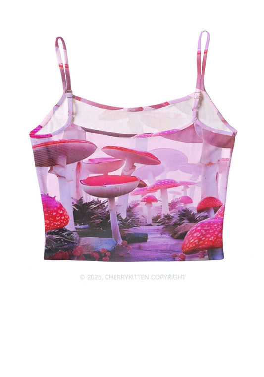Pink Mushroom Y2K Mesh Cami Tank Cherrykitten