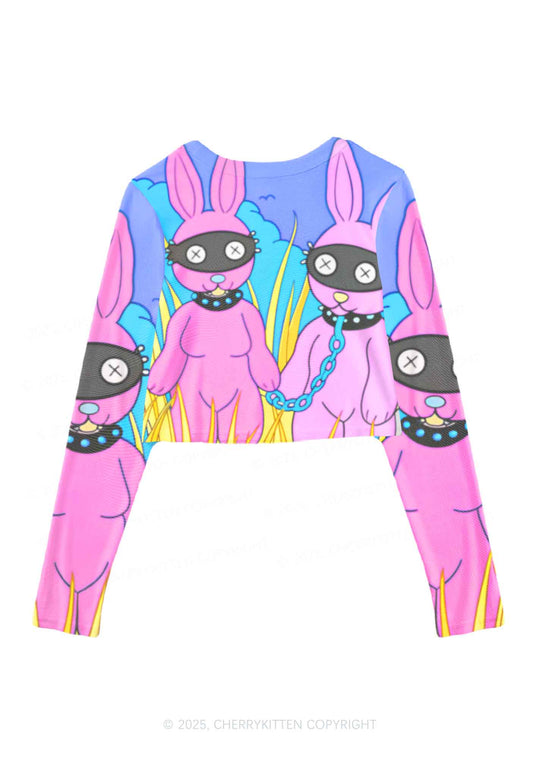 BDSM Bunny Y2K Mesh Long Sleeve Crop Top Cherrykitten