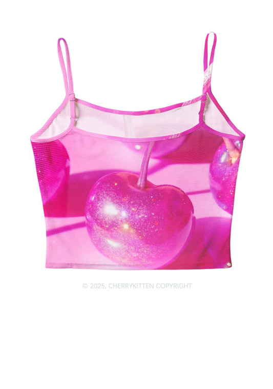 Glitter Pink Cherry Y2K Mesh Cami Tank Cherrykitten