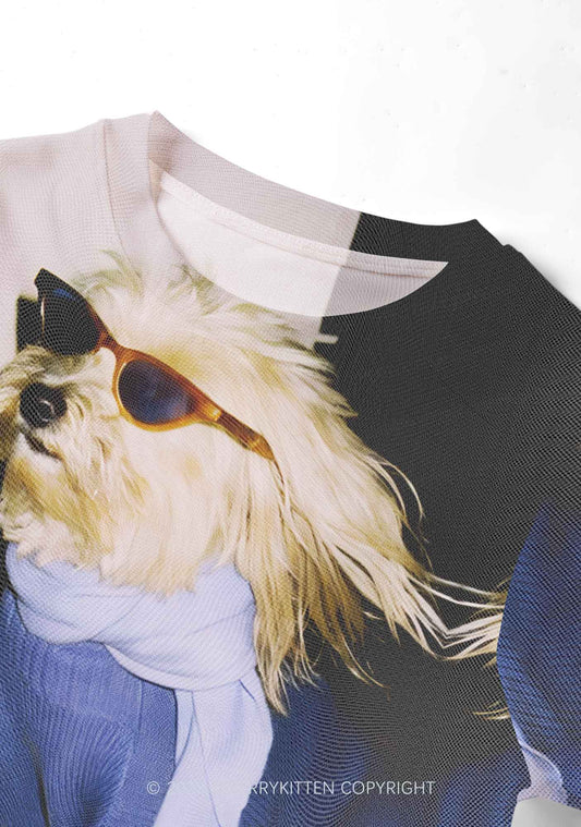 Sunglasses Puppy Y2K Mesh Crop Top Cherrykitten