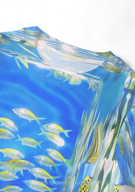 Undersea Fish Y2K Mesh Crop Top Cherrykitten