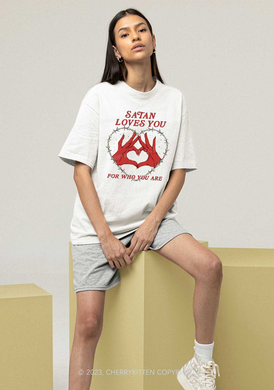 Satan Loves You Heart Halloween Y2K Chunky Shirt Cherrykitten