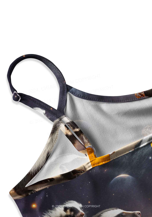 Bear And Lion Y2K Print Slip Dress Cherrykitten