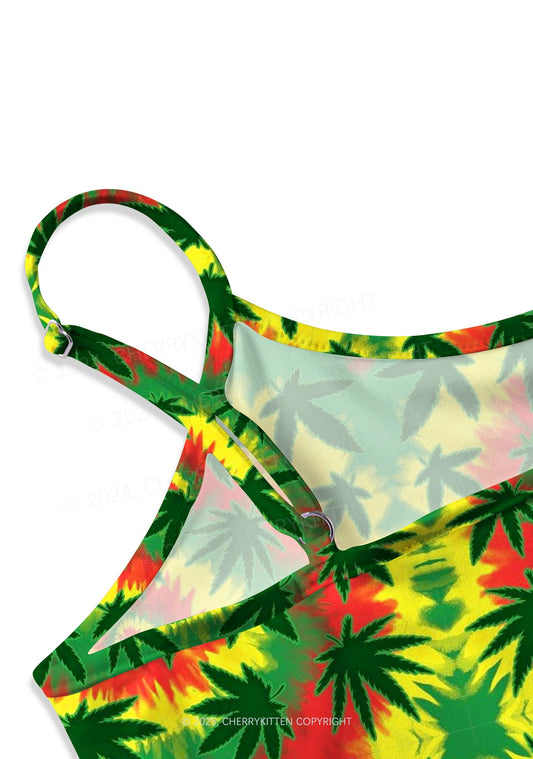Trippy Leaves Y2K Print Slip Dress Cherrykitten