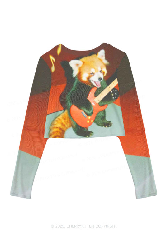 Guitar Raccoon Y2K Mesh Long Sleeve Crop Top Cherrykitten