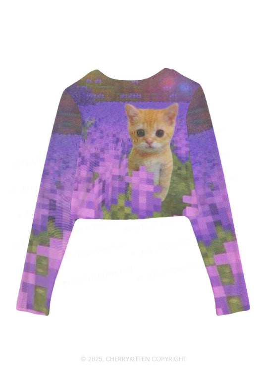 Lavender Kitten Y2K Mesh Long Sleeve Crop Top Cherrykitten