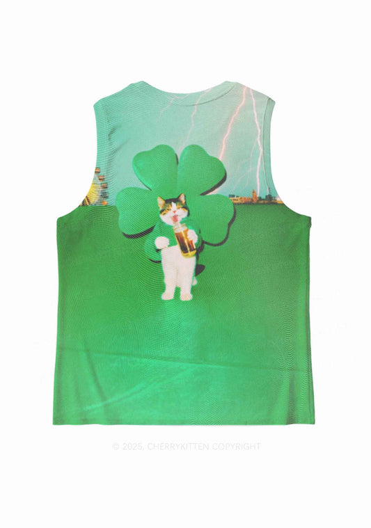 Lucky Cat St Patricks Y2K Mesh Muscle Tank Cherrykitten