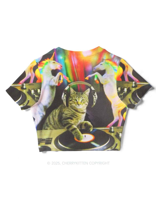 DJ Cat Unicorn Y2K Mesh Crop Top Cherrykitten