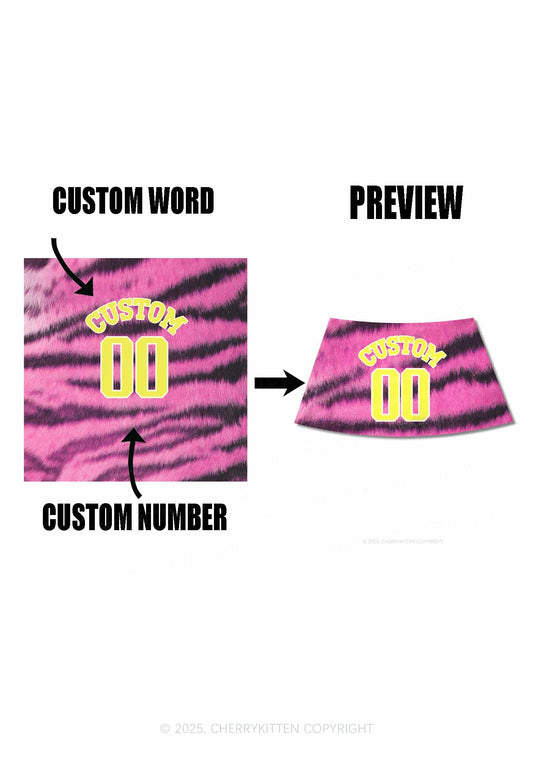 Pink Tiger Stripe Custom Text Y2K Print Mini Skirt Cherrykitten