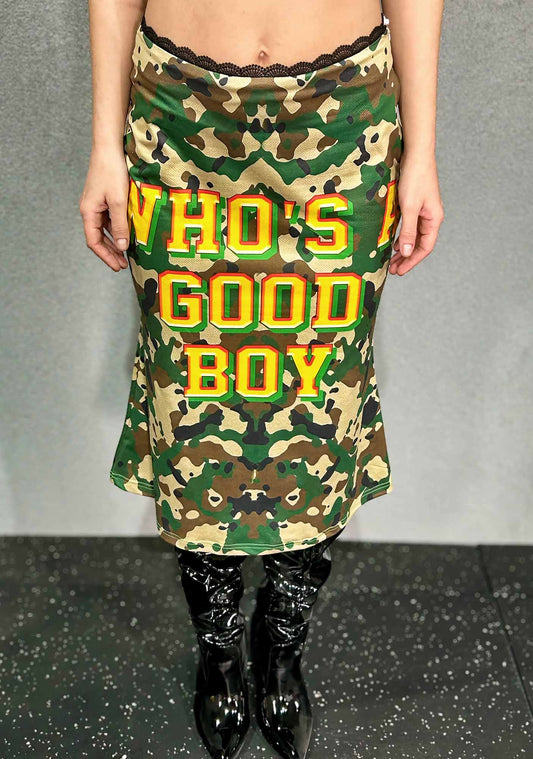 Whos A Good Boy Y2K Print Midi Skirt Cherrykitten