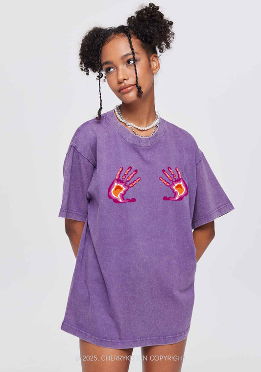 Lesbian Thermal Hands Y2K Shirts Washed Tee Cherrykitten