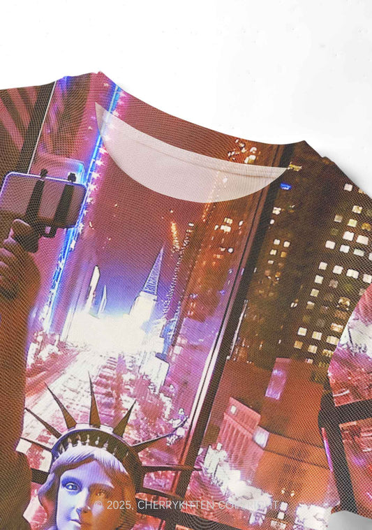 Statue Of Liberty Y2K Mesh Crop Top Cherrykitten