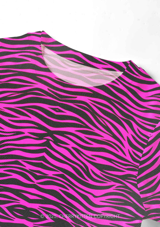 Pink Zebra Y2K Mesh Crop Top Cherrykitten