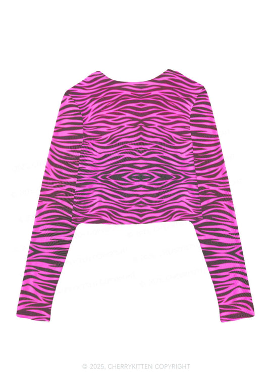 Pink Zebra Y2K Mesh Long Sleeve Crop Top Cherrykitten