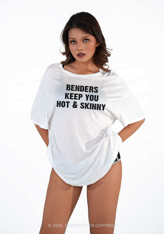 Benders Keep You Hot&Skinny Y2K Sheer Boyfriend Tee Cherrykitten