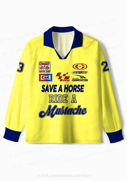 Custom Yellow Ride A Mustache Y2K Sport Long Sleeve Jersey Shirts Cherrykitten
