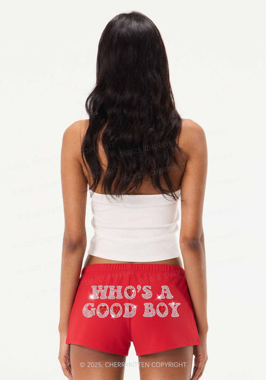 Rhinestone Whos A Good Boy Y2K Booty Shorts Cherrykitten