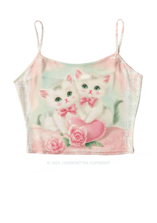 Rose Kitties Y2K Print Cami Crop Top Cherrykitten