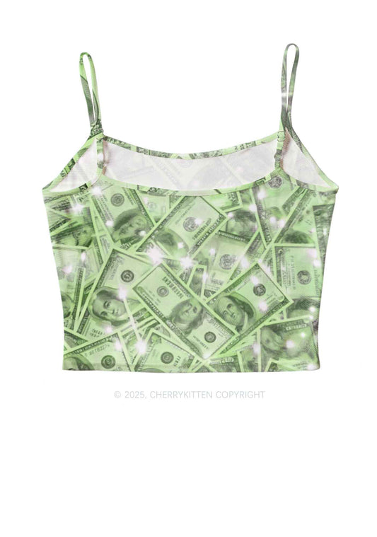 Green Shiny Money Y2K Mesh Cami Tank Cherrykitten